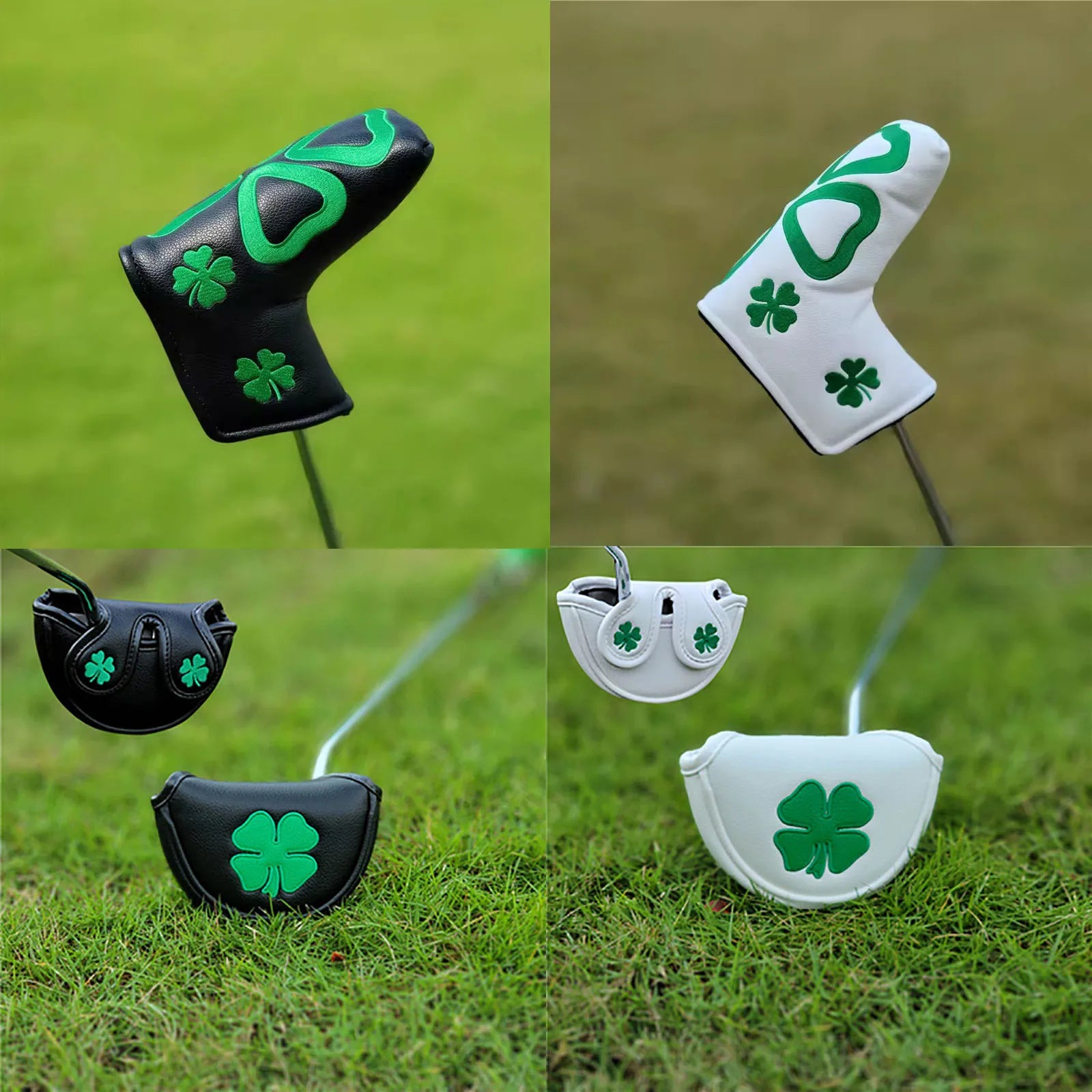 1 housse de putter de golf Manget en cuir PU, maillet de lame, maillet de golf, couvre-tête de club de putter à motif à quatre feuilles