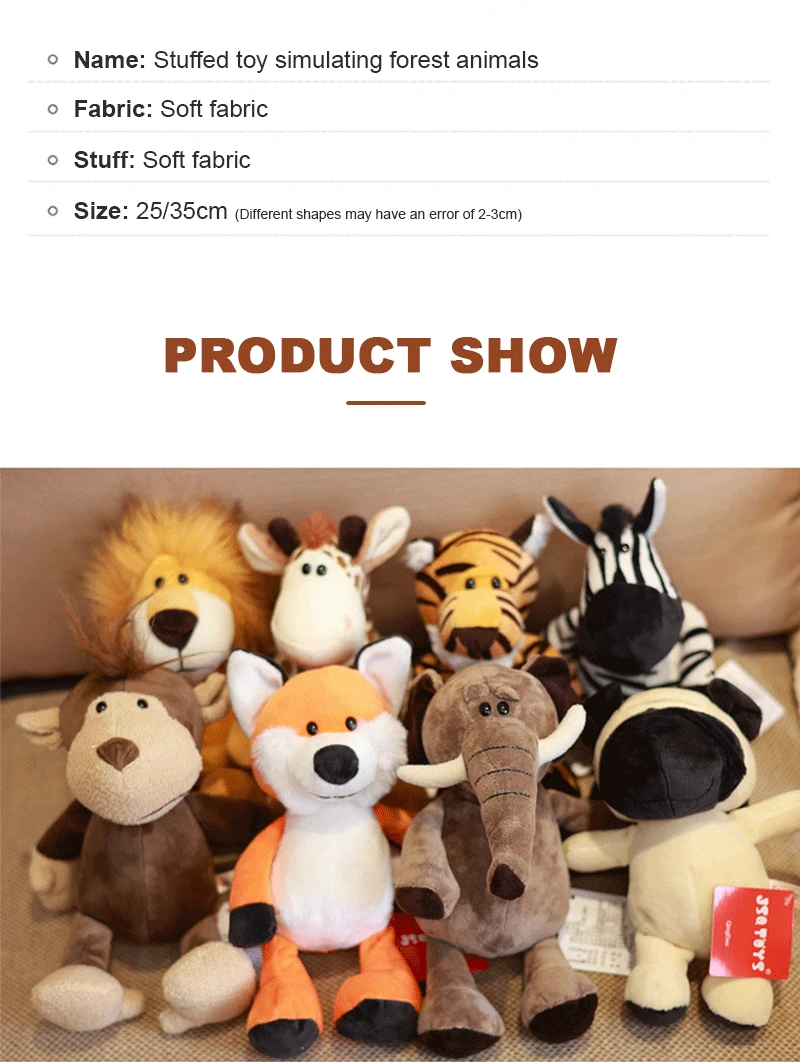 Reliable Material: The interior of the jungle animal filled toy is made of high-quality PP cotton, which is soft, delicate, safe, and long-lasting. These plush jungle animals will make you feel in the jungle and nature, bringing you more fun