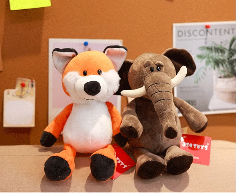 Peluche Kawaii de 25 cm, animal de la jungle, chien, zèbre, éléphant, lion, renard, girafe, jouets pour enfants, cadeau d'anniversaire