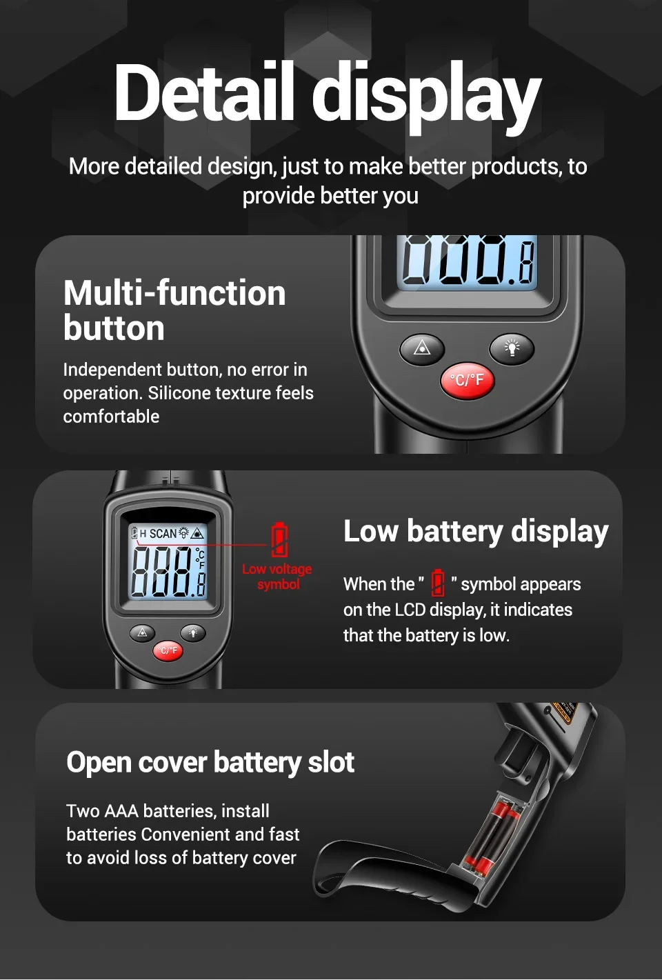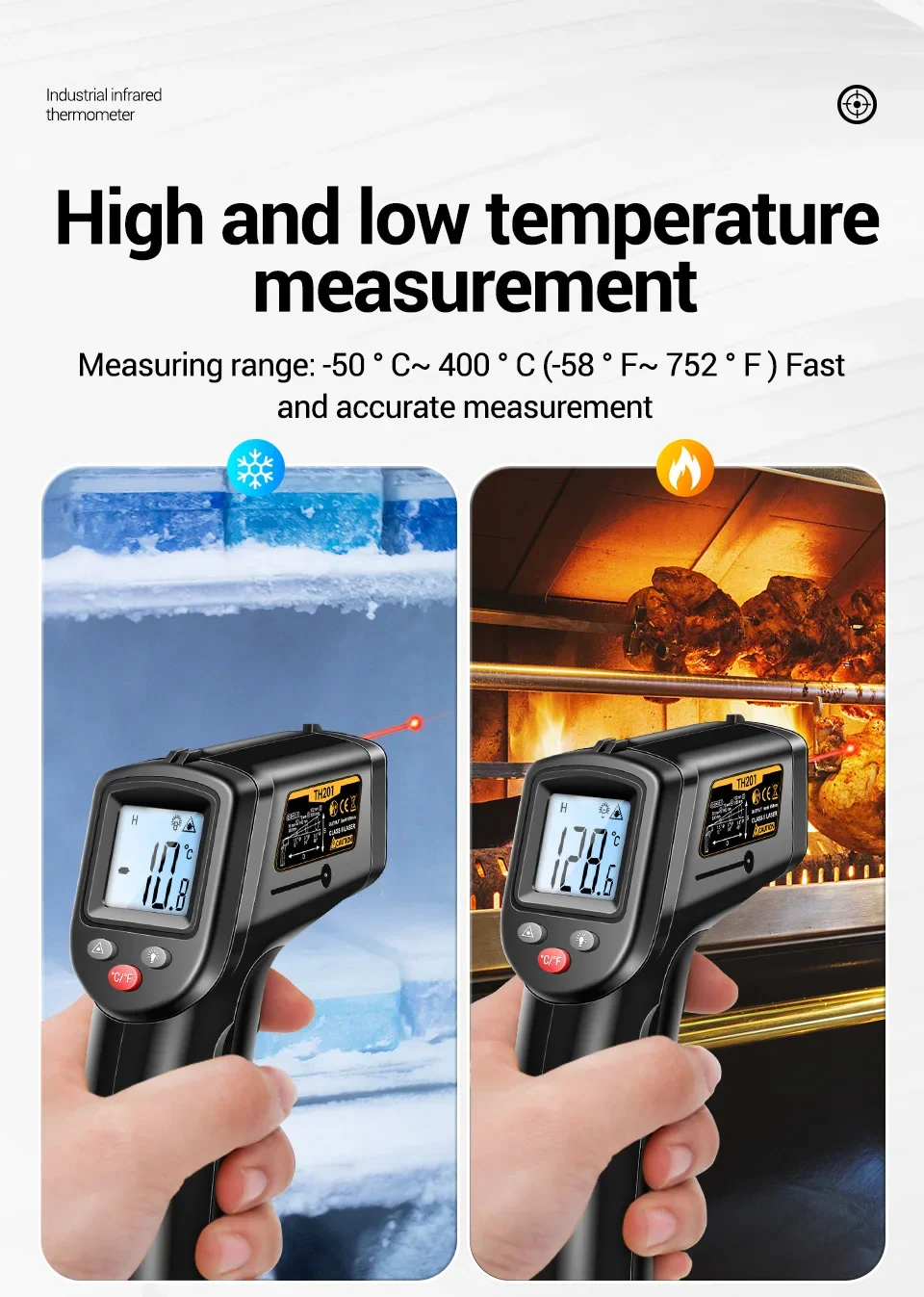 ANENG Digital Infrared Measuring Gun High Sensitivity Hygrometer Backlight Screen Laser Positioning NonContact Temperat TH201
