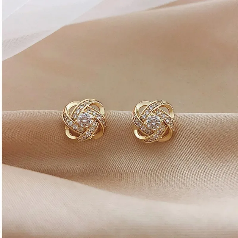 New Exquisite Shiny Zircon Heart Flower Earrings Korean Elegant Square Geometric Crystal Earrings for Women Fashion Jewelry Gift