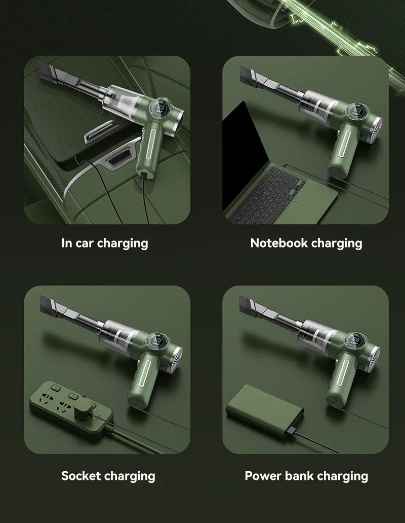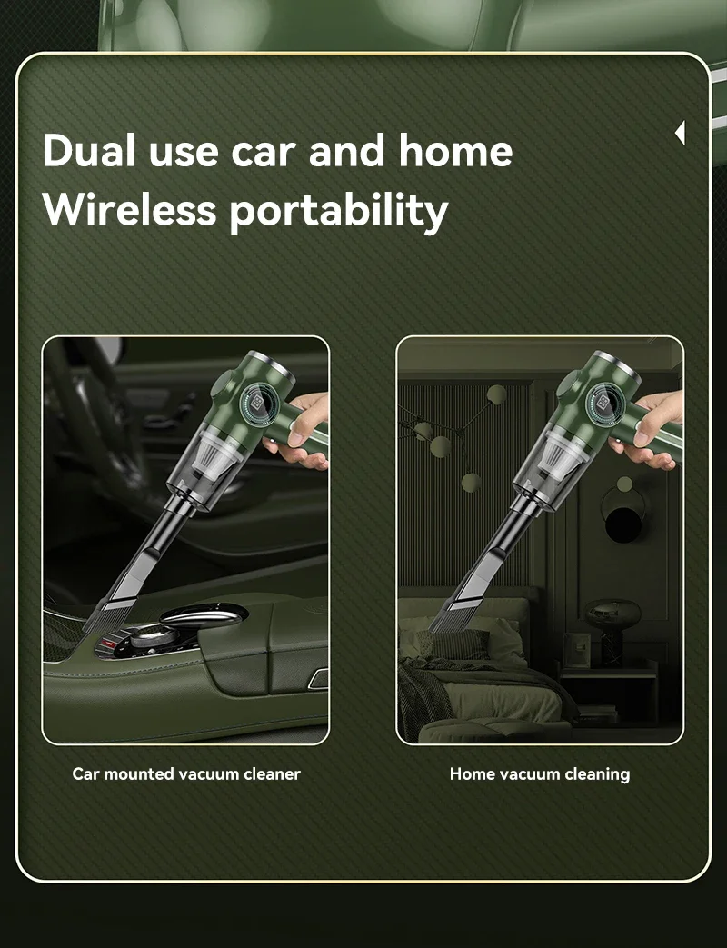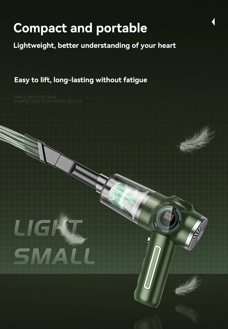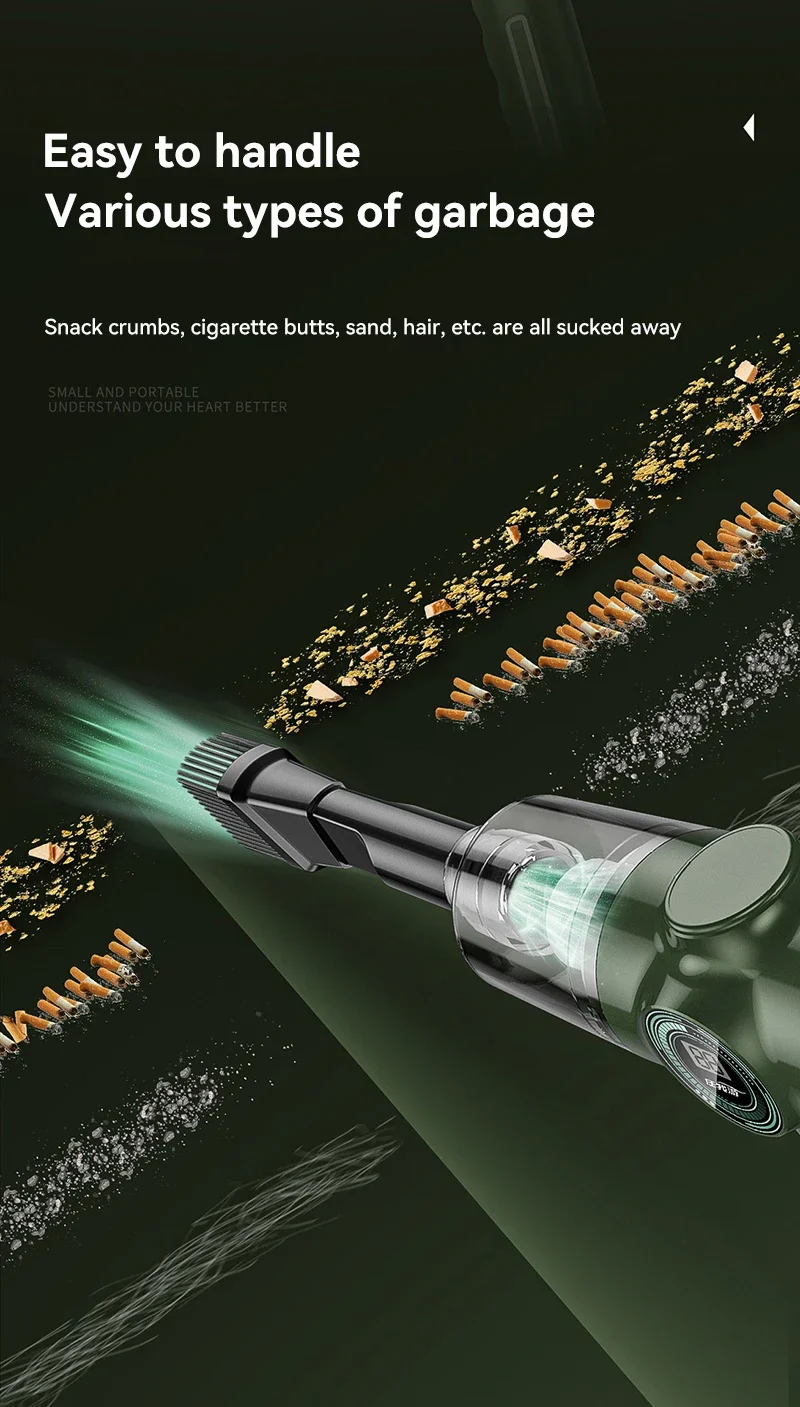 A handheld car vacuum cleaner is a compact and portable device designed specifically for cleaning the interior of vehicles. Here's a detailed description of its features and functionality: