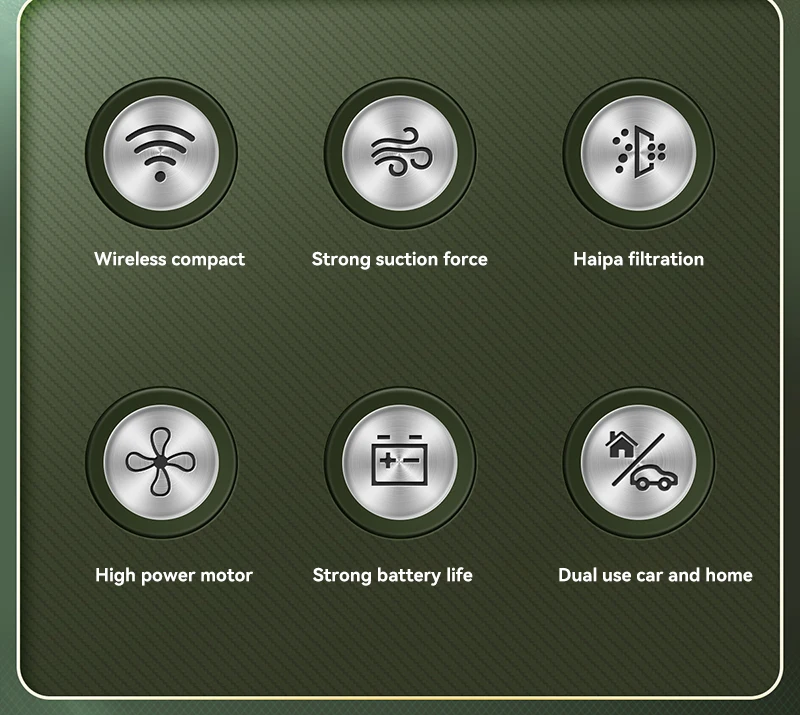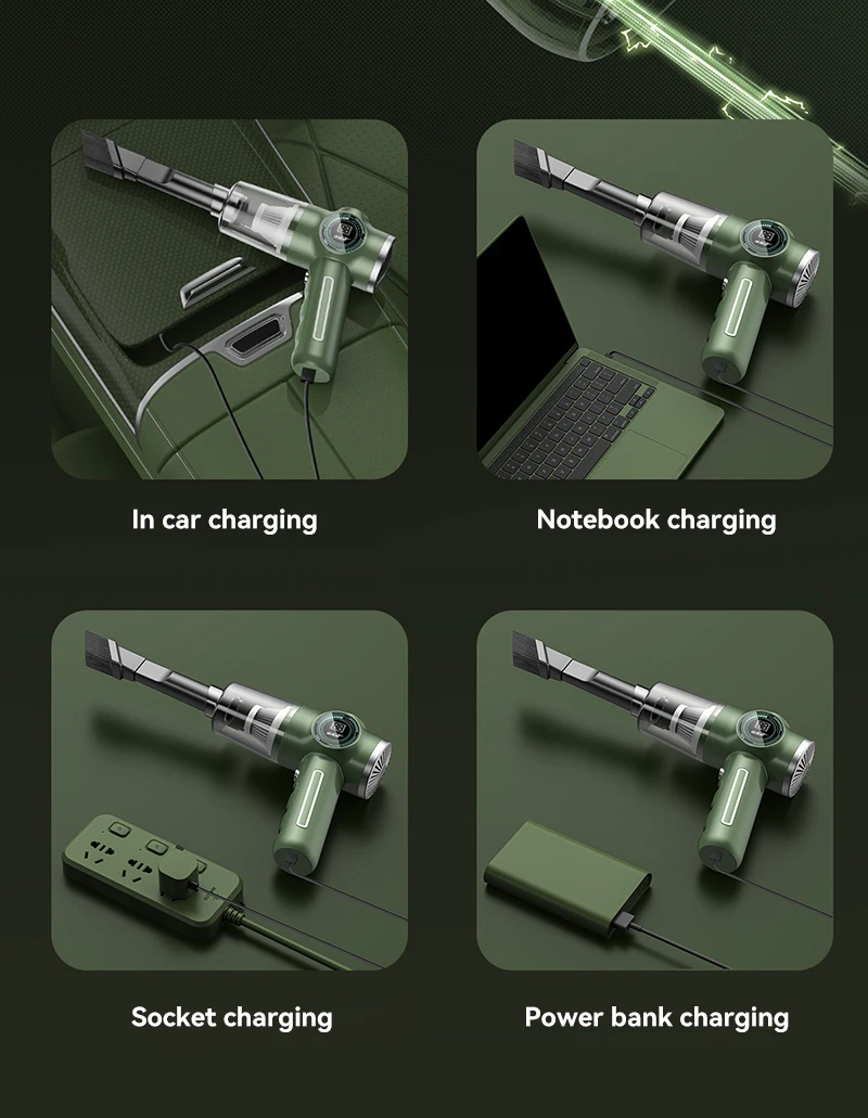 10.Long Battery Life and Fast Charging Using multiple 2000mAh lithium-ion batteries and fast charging technology, the battery life can be extended by about 60 minutes after being fully charged. Our fast charging technology includes lithium-ion battery surge protection to ensure safe operation. LED lights on cordless car vacuums are great for lighting up those dark, hard-to-see places.